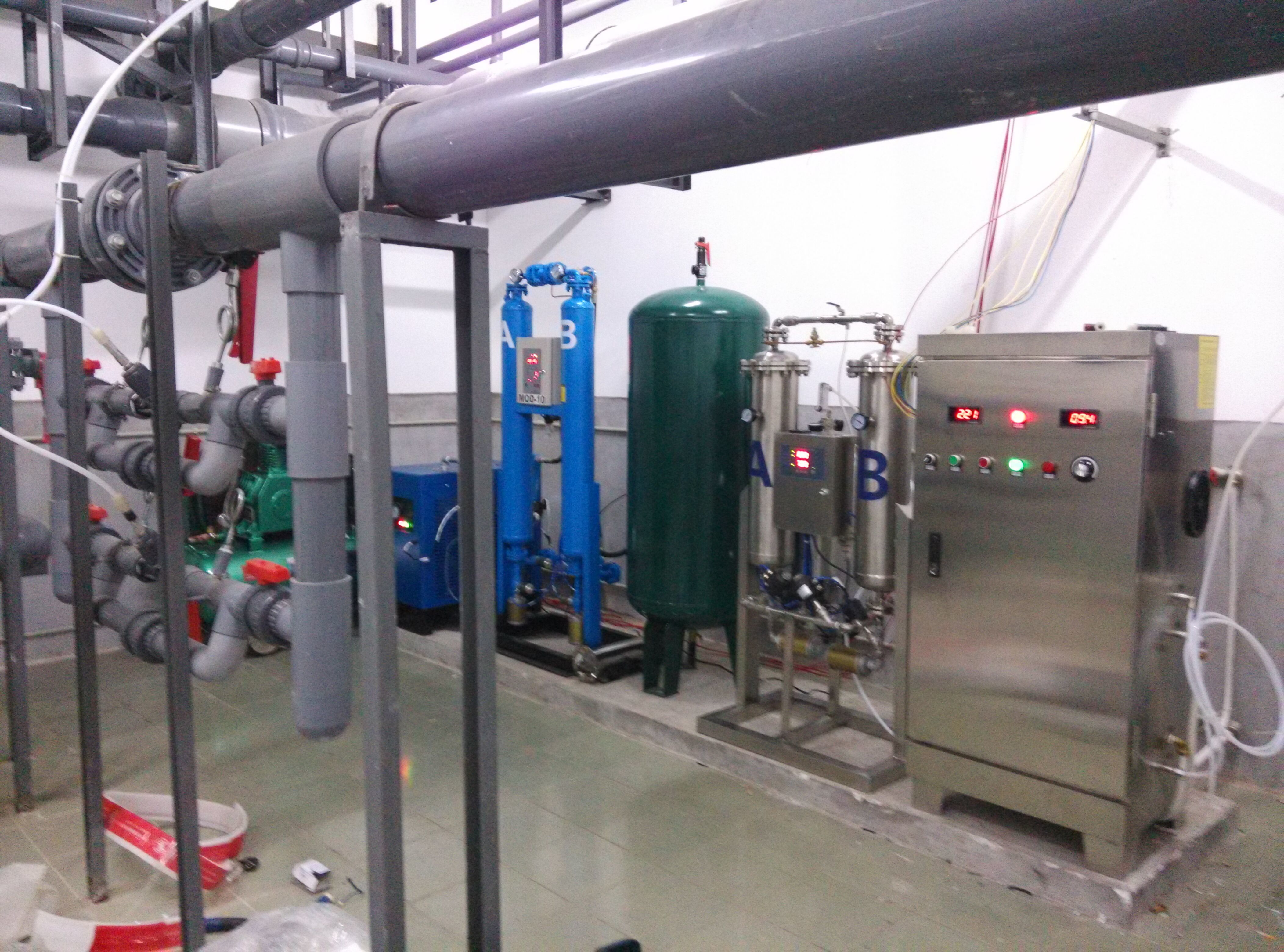 實(shí)際測試表明,當(dāng)臭氧投加量1.0mg/l時(shí),池中臭氧濃度最高不會(huì)超過0.1mg/l。有資料指出,游泳池水的臭氧濃度在0.15mg/l以下時(shí),對人體無害,實(shí)際情況也是如此。需要強(qiáng)調(diào)指出的是,毒理學(xué)試驗(yàn)表明,在相同劑量下,臭氧的毒性低于氯,如果說臭氧在此濃度下對人有害,那么,氯對人體的危害更大。